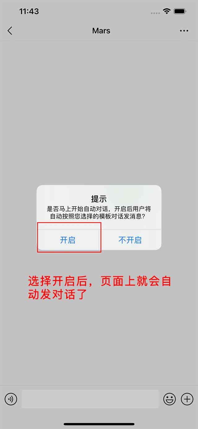 返回聊天页面,在提示框中选择启用(若不启用,则需要用户手动发对话才会触发自动回复)